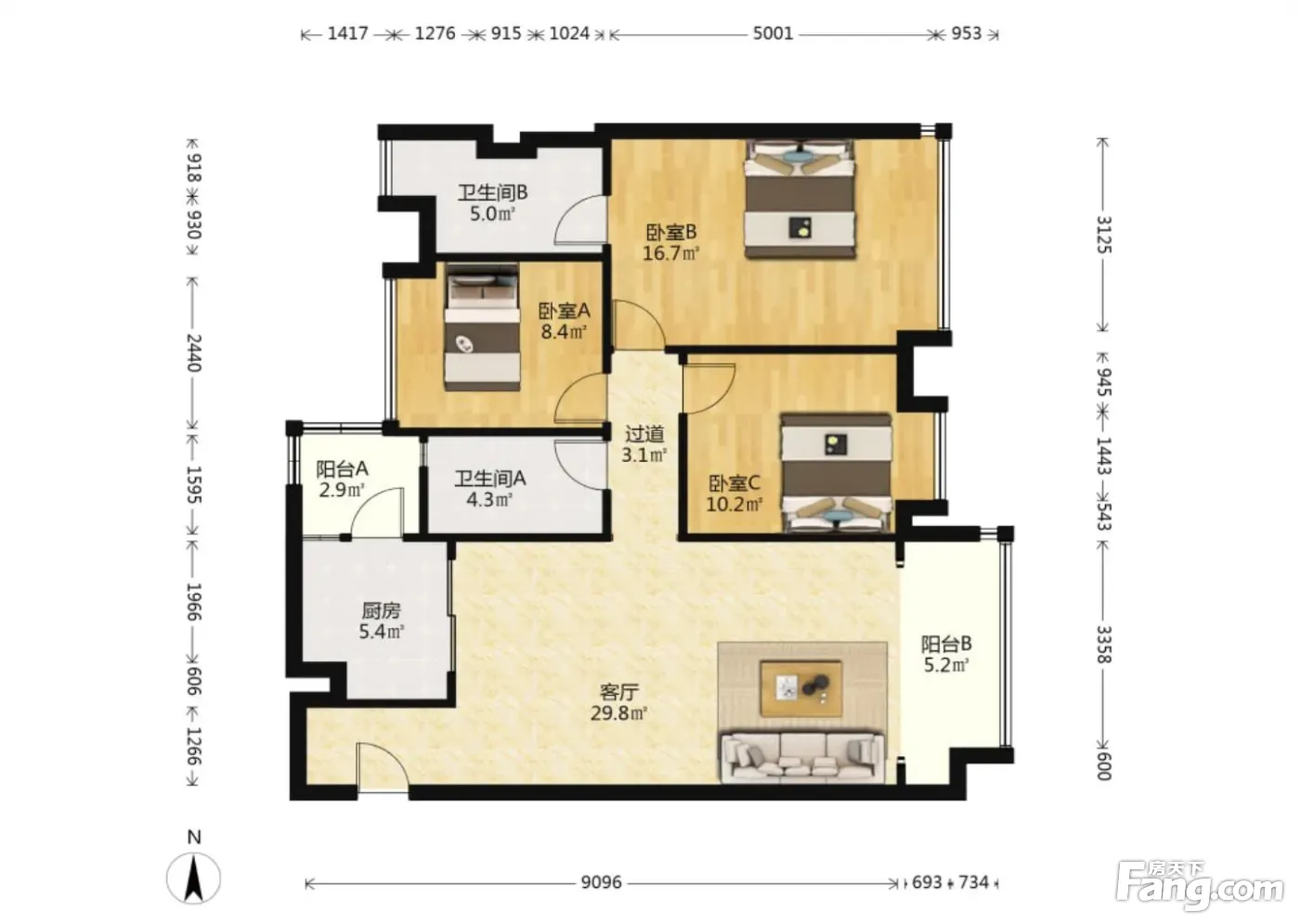 3室1厅2卫
