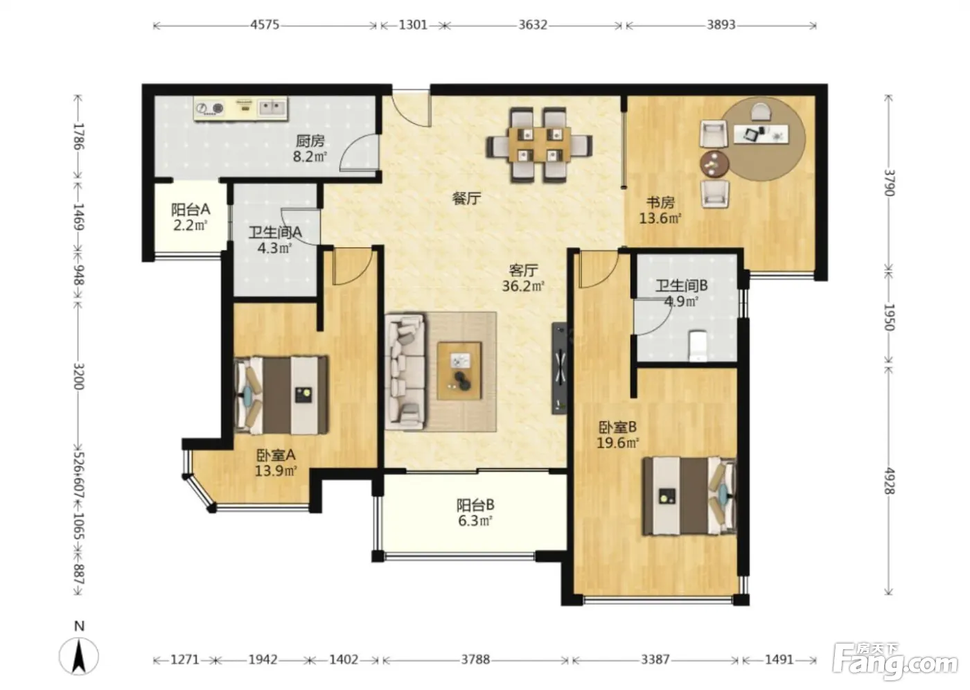 户型齐全,主打明厨,客厅朝南,主卧朝南,独立衣帽间三居