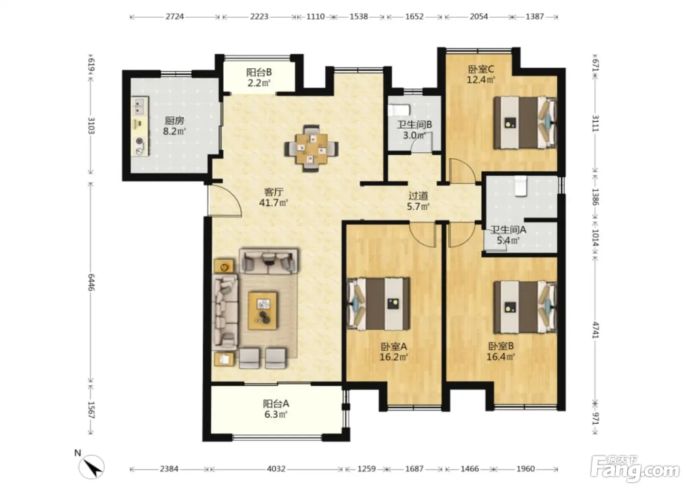 户型齐全,主打全明格局,户型方正三居