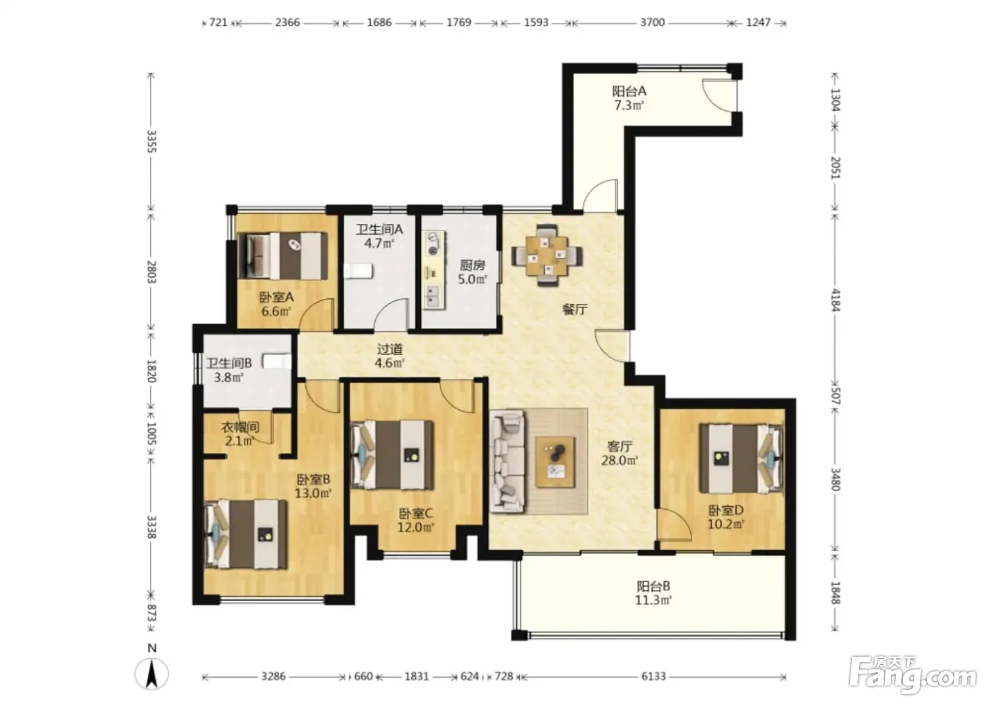 龙庭居 170万 4室2厅2卫 精装修黄金角!千年等一回别错