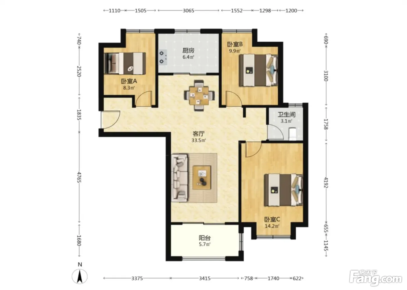 3室2厅1卫