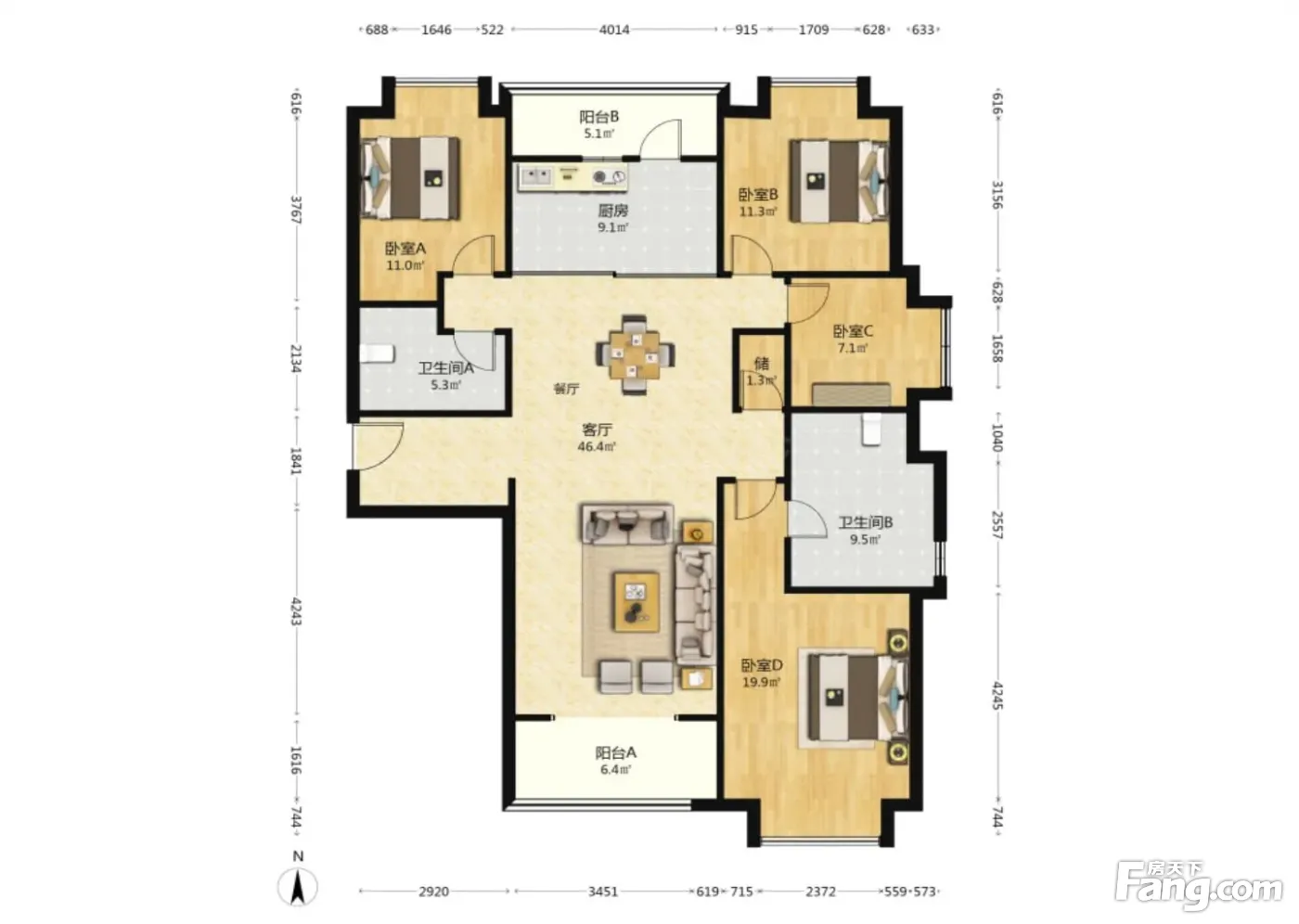 户型齐全,主打明卫,明厨四居