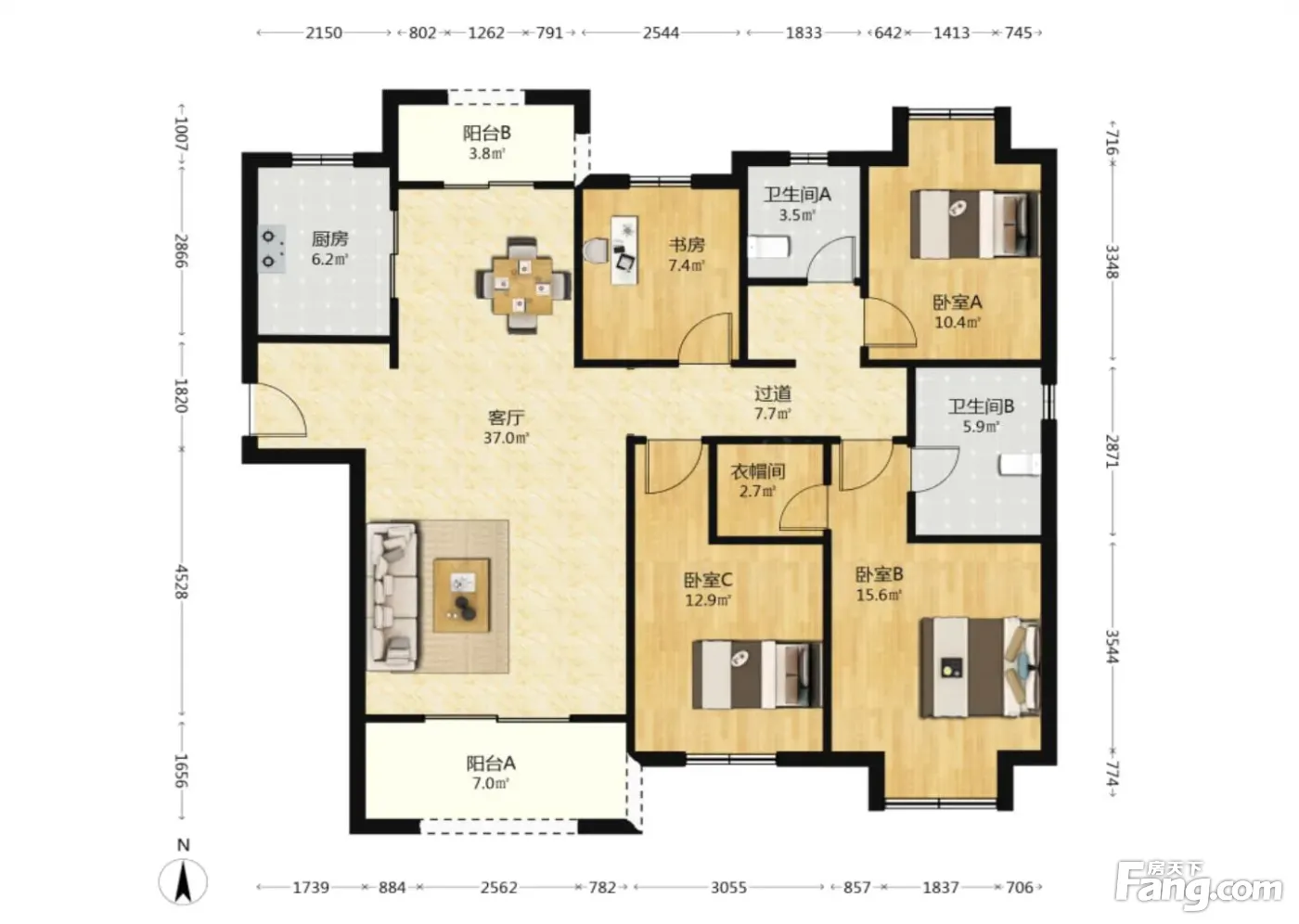 江南水都心巢 310万 4室2厅2卫 精装修