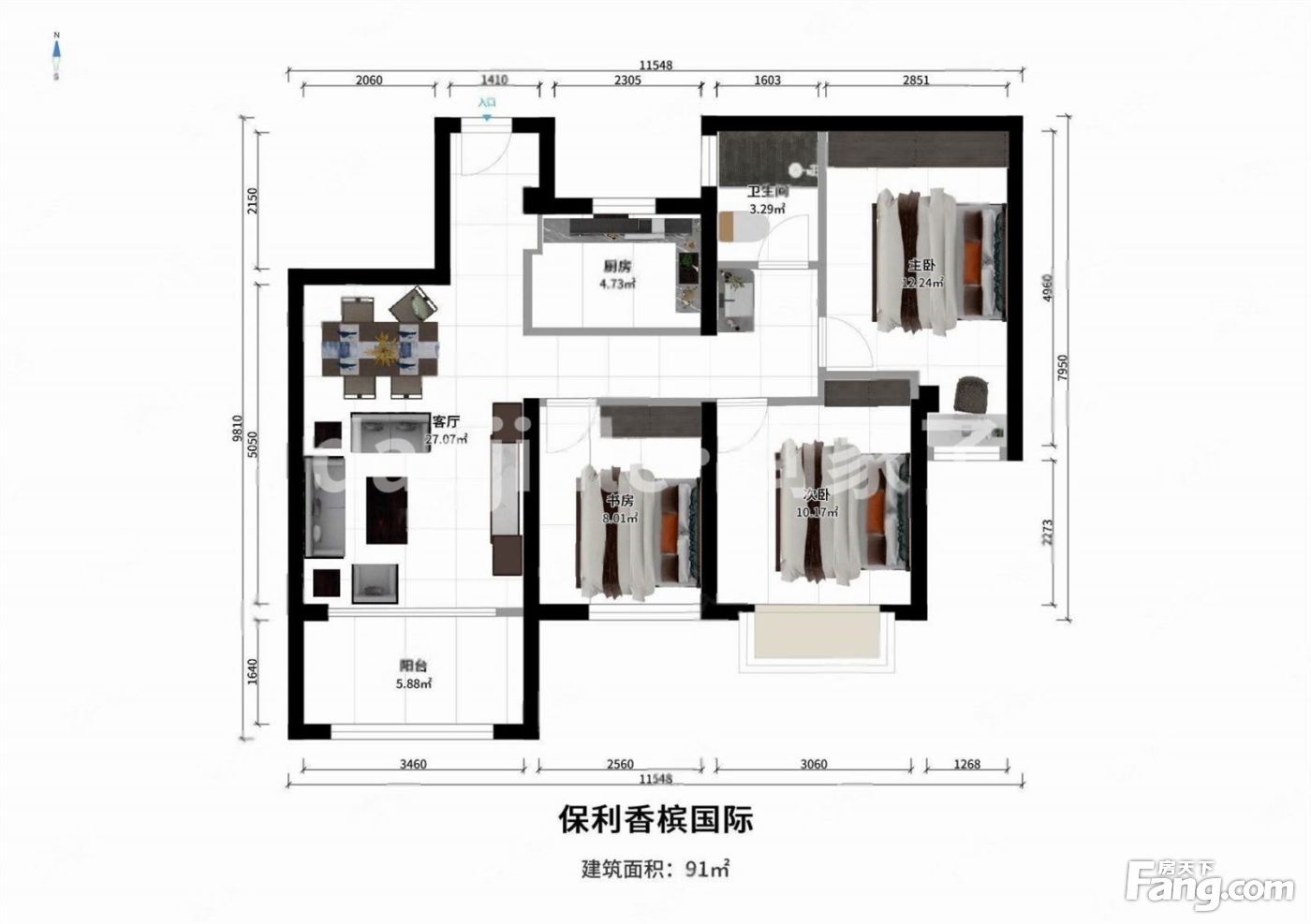 保利香槟国际,三房朝南,低楼层,带露台,带装修