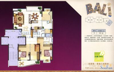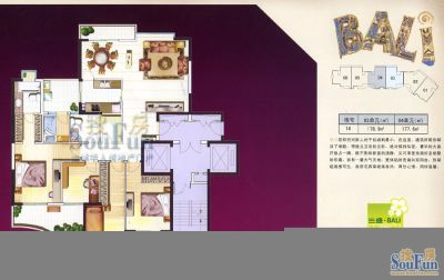 三盛巴厘岛户型主要有153平-180平的户型方正,明卫的四居 、133平-133平的户型方正,明卫,明厨,双卧朝南的三居 。