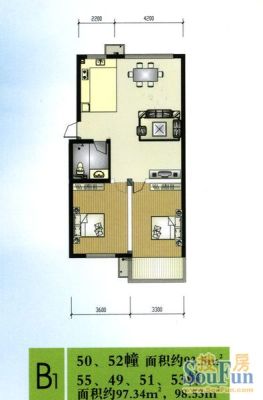 户型齐全,主打户型方正,明卫,明厨,客厅朝南,双卧朝南三居
