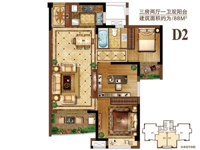 户型齐全,主打明卫三居