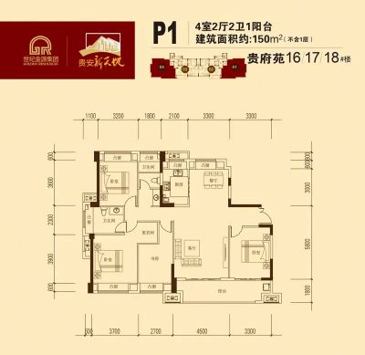 贵安新天地贵府苑 4室1厅 南