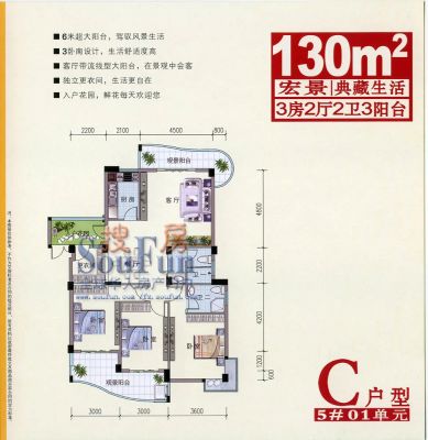 户型齐全,主打户型方正,明卫,明厨,客厅朝南,主卧朝南三居