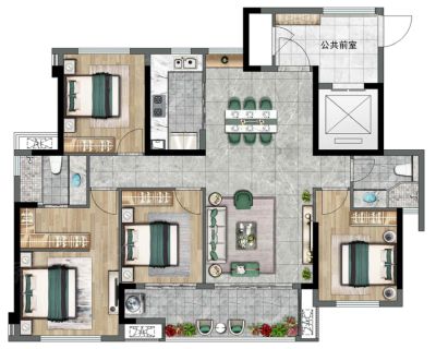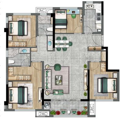 户型齐全,主打全明格局,户型方正三居
