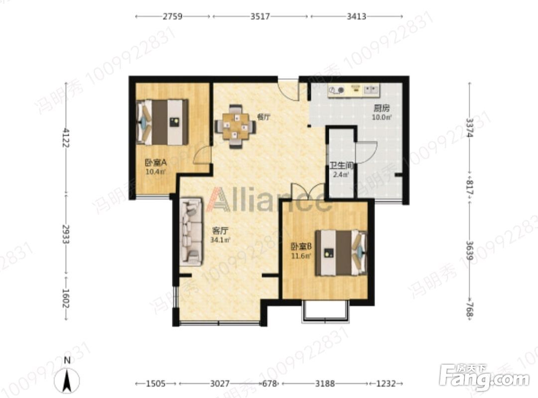 户型齐全,主打南北通透,卧室朝南三居