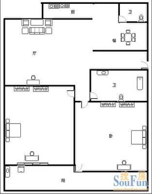 户型齐全,主打户型方正,明卫,明厨,客厅朝南,主卧朝南二居