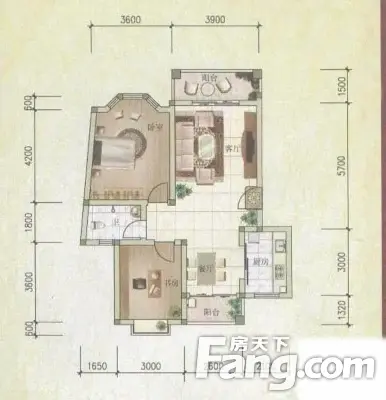 福晟钱隆御景 2室1厅 南