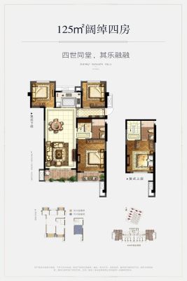 玉融正荣府户型主要有113平-125平的全明格局,户型方正的四居 、102平-102平的全明格局,户型方正的三居 。