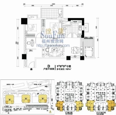 阳光假日公寓户型主要有73平-121平的户型方正,明厨,明卫,客厅朝南,全明格局,双阳台的二居 、49平-71平的户型方正,明卫的一居 。