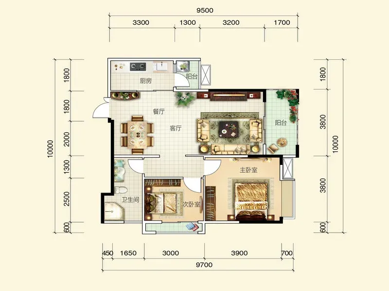 户型齐全,主打厨卫不对门,双阳台,卧室带阳台二居