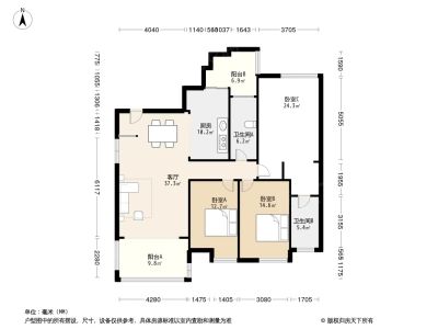 户型方正、 南北朝向、通风采光佳、格局合理。