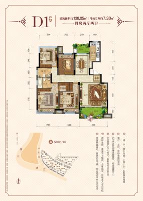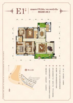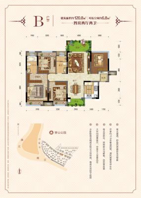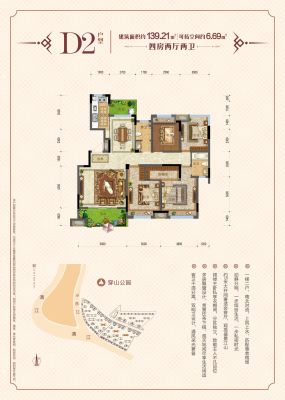 户型齐全,主打南北通透,户型方正,动静分离,采光充足,干湿分离,双阳台四居