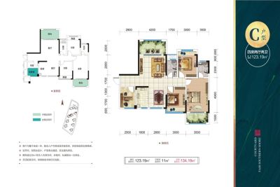 户型齐全,主打户型方正,动静分离,高附赠空间,采光充足,干湿分离,双阳台四居