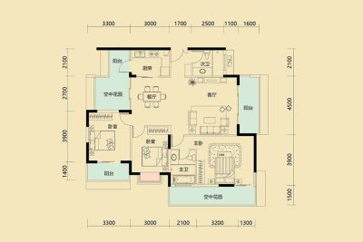 户型齐全,主打户型方正,动静分离,观景飘窗二居