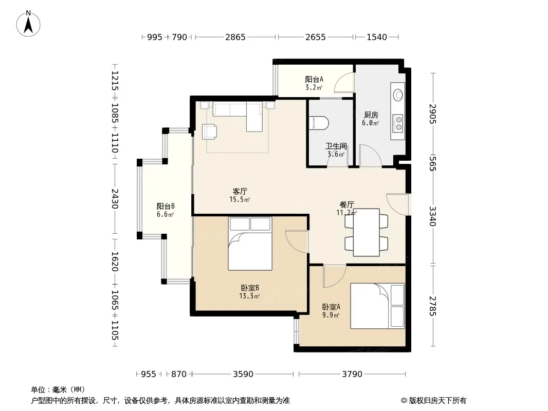 户型齐全,主打户型方正,明卫,明厨,主卧朝南三居