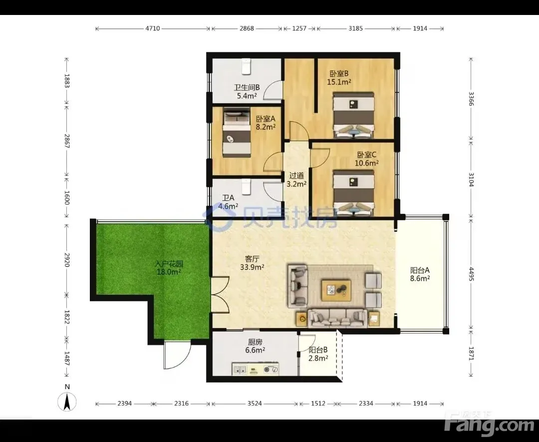 云岩 天然居花园 3室2厅