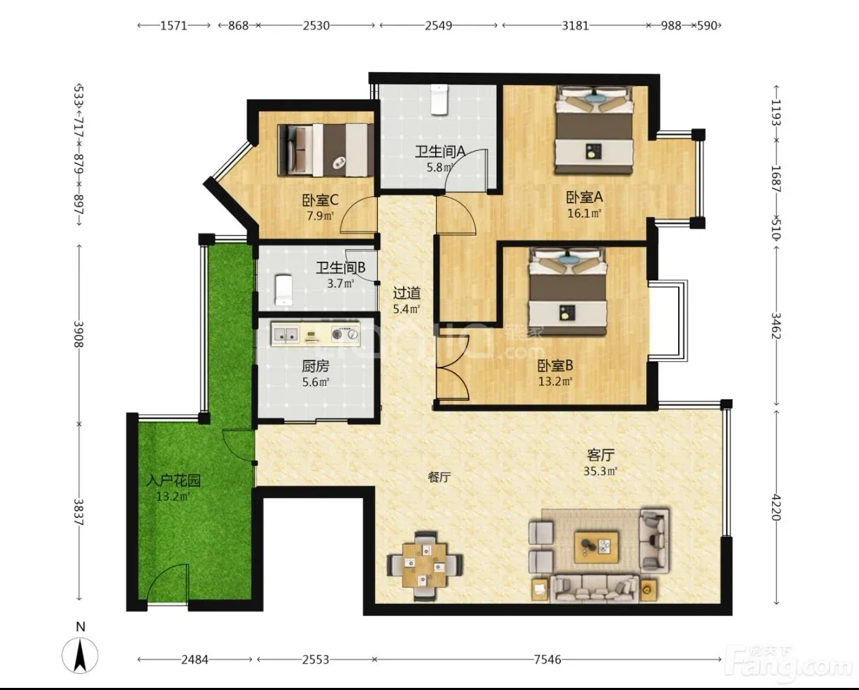 南明 盛世花城 3室2厅 131.00㎡ 188.80万
