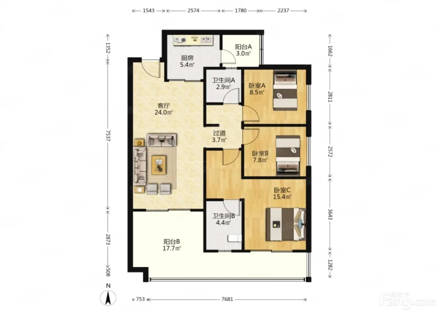 南明 万科翡翠滨江 3室1厅 108.73㎡ 108万