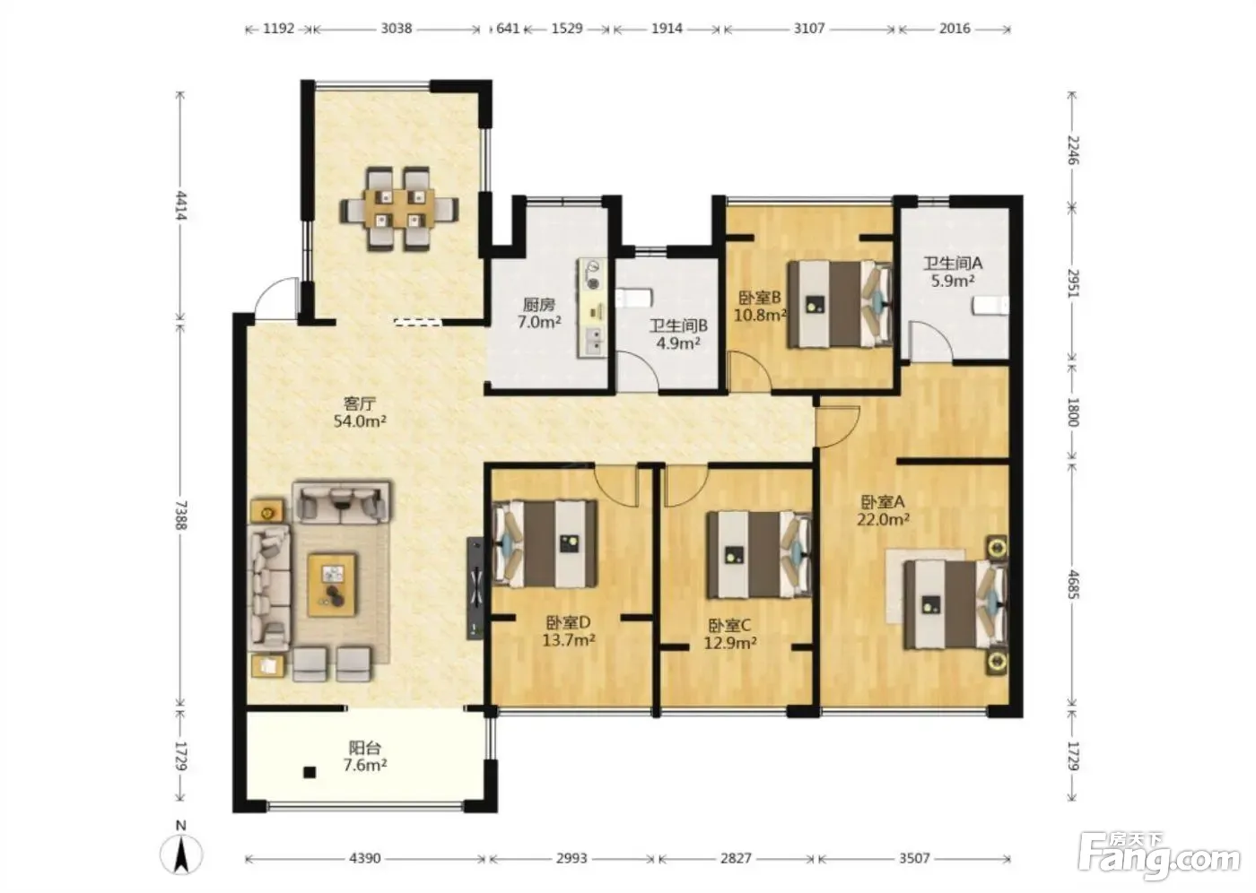 户型齐全,主打动静分离,采光充足四居