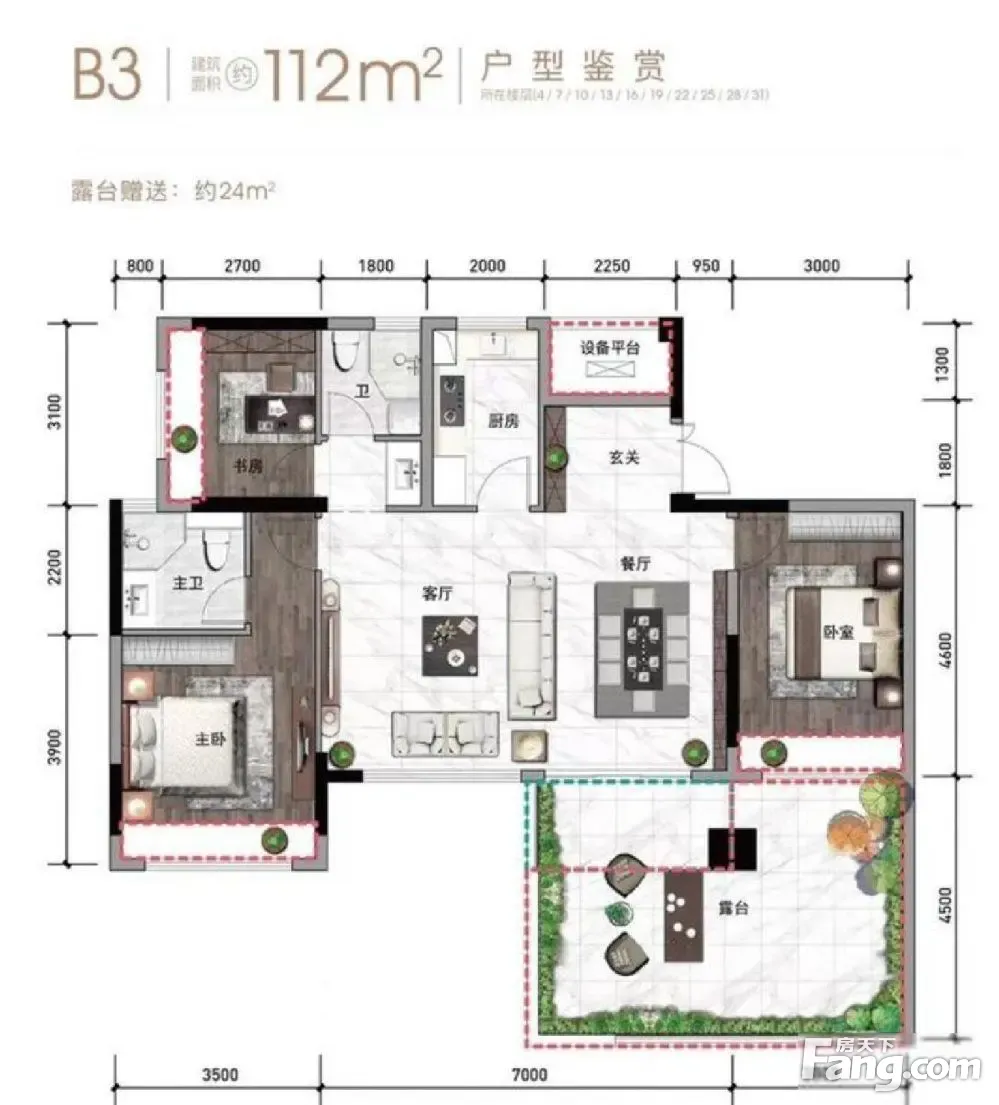 中国铁建·铁建城户型主要有112平-412平的南北通透,全明格局的三居 、138平-260平的南北通透,全明格局的四居 。