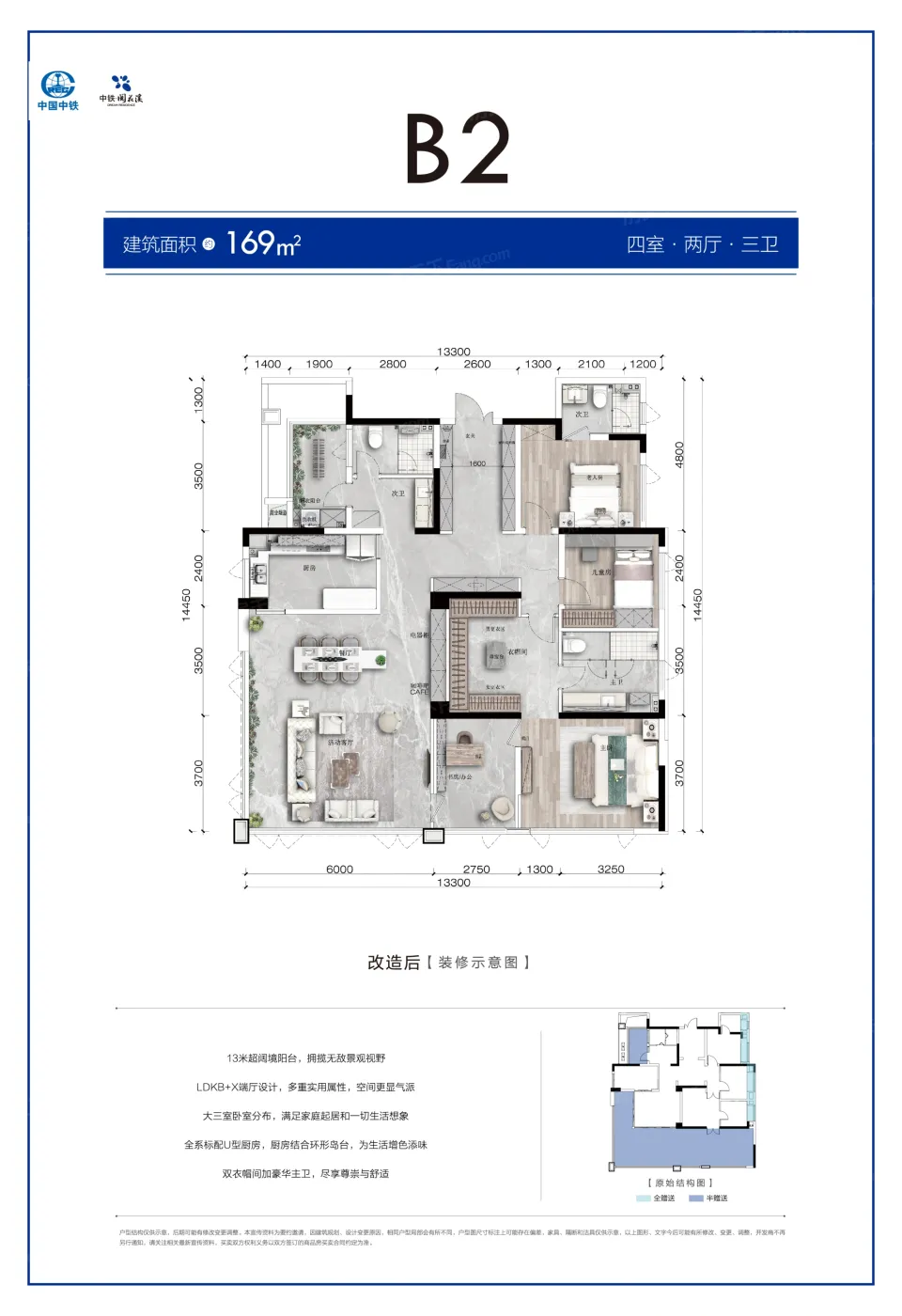 中铁·阅花溪户型主要有101平-141平的户型方正,主卧套间,卧室带阳台,U型厨房,大面宽阳台,带露台的三居 、110平-249平的高附赠空间,独立玄关,U型厨房,大面宽阳台的四居 。
