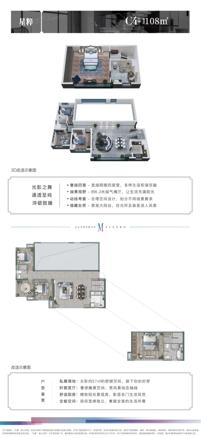 远洋红星·观山天铂户型主要有108平-140平的南北通透,全明格局,户型方正,动静分离,高附赠空间,采光充足的四居 、95平-95平的南北通透,全明格局,户型方正,动静分离,高附赠空间,采光充足的三居 。