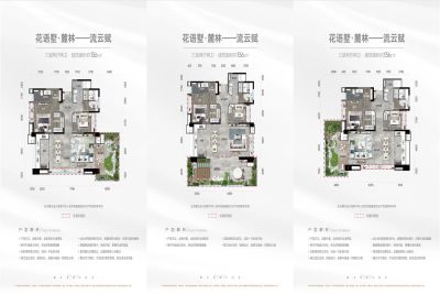 花语墅户型主要有143平-255平的南北通透,全明格局的四居 、114平-136平的户型方正,动静分离,采光充足,干湿分离的三居 。