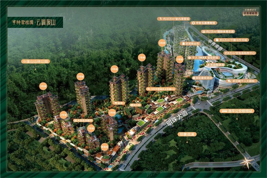 亨特碧桂园·云涧溪山项目位于花溪区, 生态示范区、文化旅游创新区。项目北临甲秀南路,东靠明珠大道,南眺洛平水库,西南侧绵延青山。集住宅、商业、会所于一体的绿色生态社区。高层洋房3.3米层高、错层阳台加超高赠送面积。 社区内配套合力超市、3000㎡ 水会、室内恒温泳池、室内篮球场等,完善商业配套。引进垂直绿化建筑理念——以生态筑家,让生活回归自然的理念,打造空中错层花园阳台景观,从而让每一层的住户都有花园,同时以露台面积改造多变的空间打造更符合业主爱好与需求的空间如:棋牌室、瑜伽室、健身房等。