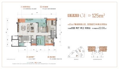 户型齐全,主打双阳台,大面宽阳台,独立电梯,主卧套间,高附赠空间四居