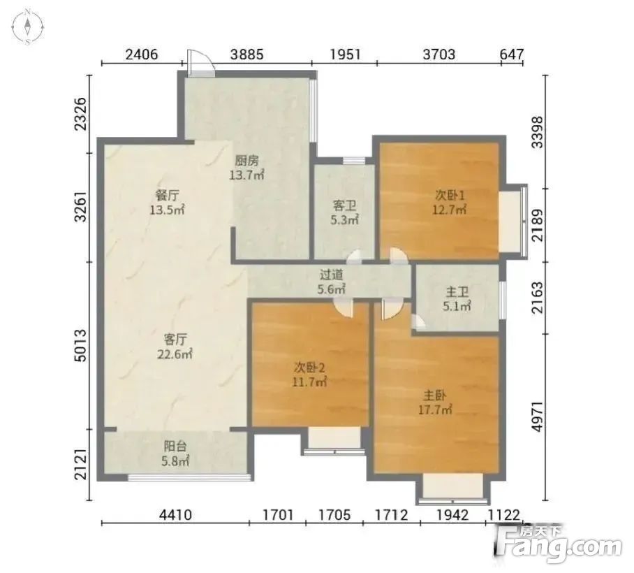 户型齐全,主打明卫,明厨,客厅朝南,主卧朝南三居