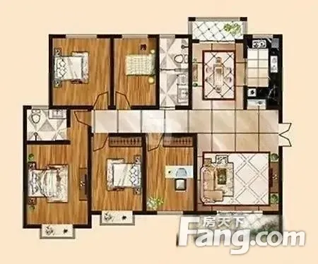 户型齐全,主打户型方正,主卧套间,带衣帽间,L型厨房四居