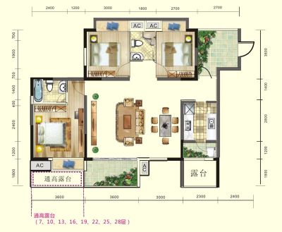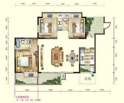 户型齐全,主打户型方正,观景落地窗三居