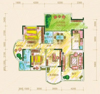 户型齐全,主打户型方正,明卫,独立衣帽间,客厅朝南四居