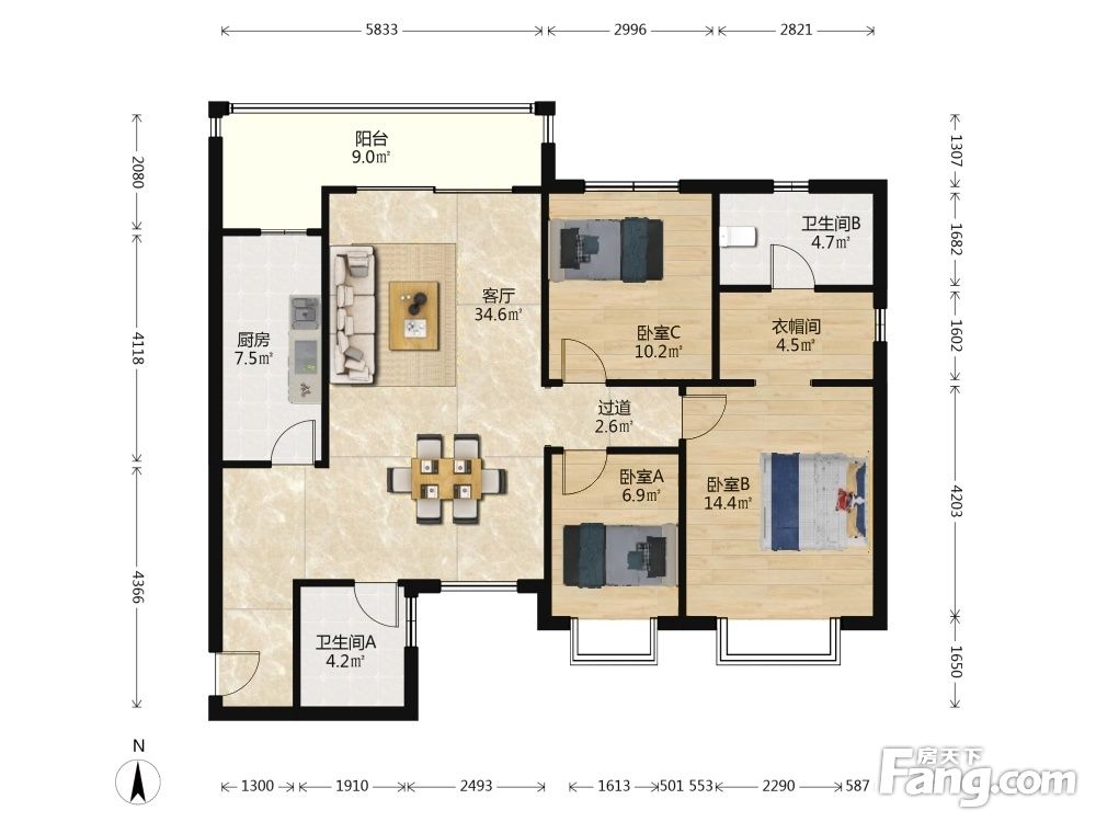 3室2厅1卫