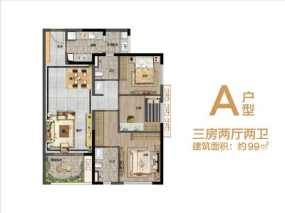 户型齐全,主打南北通透,全明格局,户型方正,动静分离,高附赠空间,采光充足三居