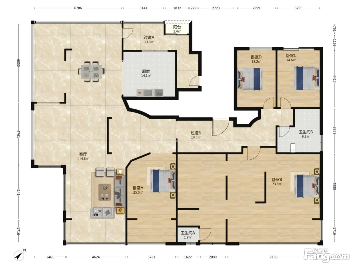 户型齐全,主打户型方正,主卧套间,带衣帽间,L型厨房四居