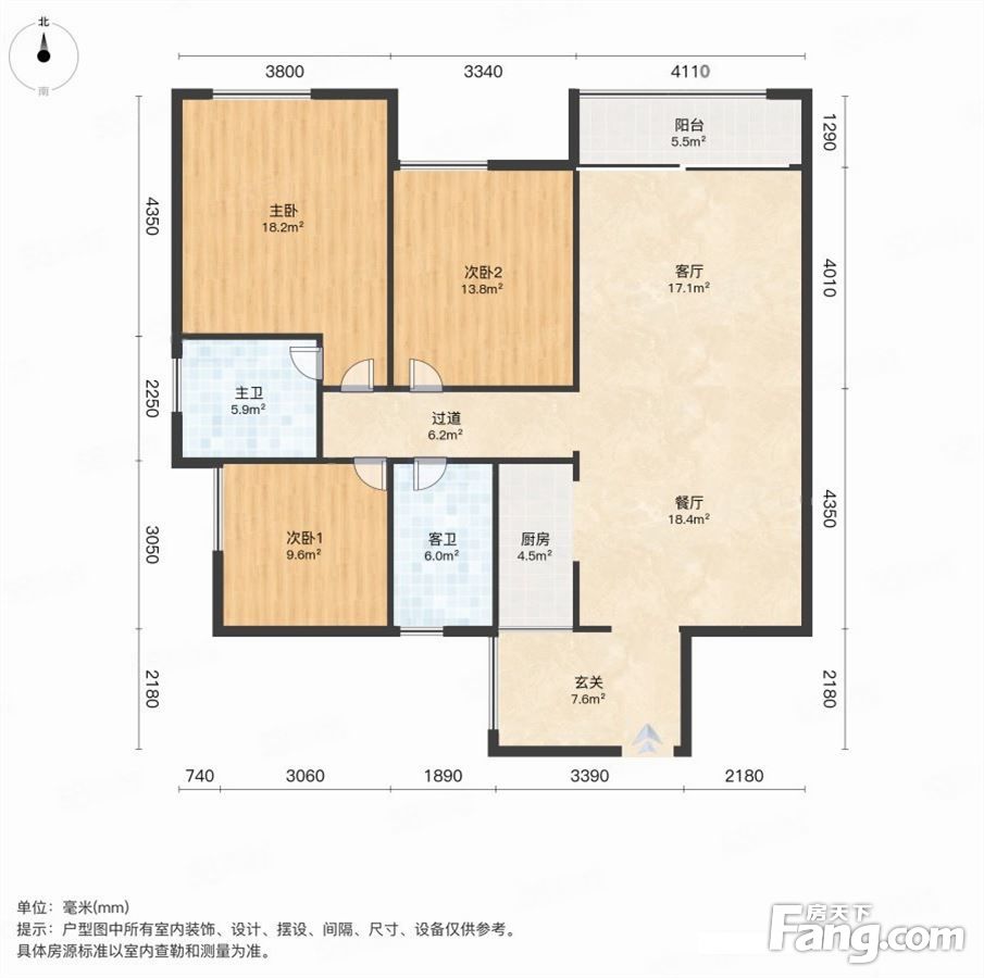 户型齐全,主打明卫,独立衣帽间,明厨,主卧朝南三居