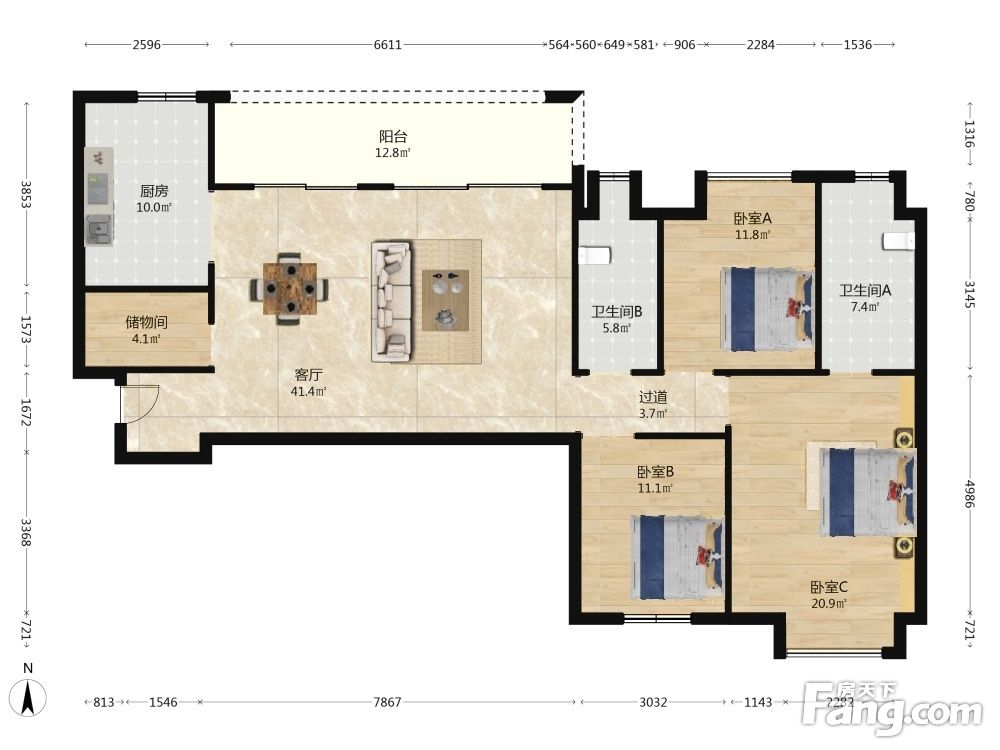 户型齐全,主打全明格局,动静分离,采光充足三居