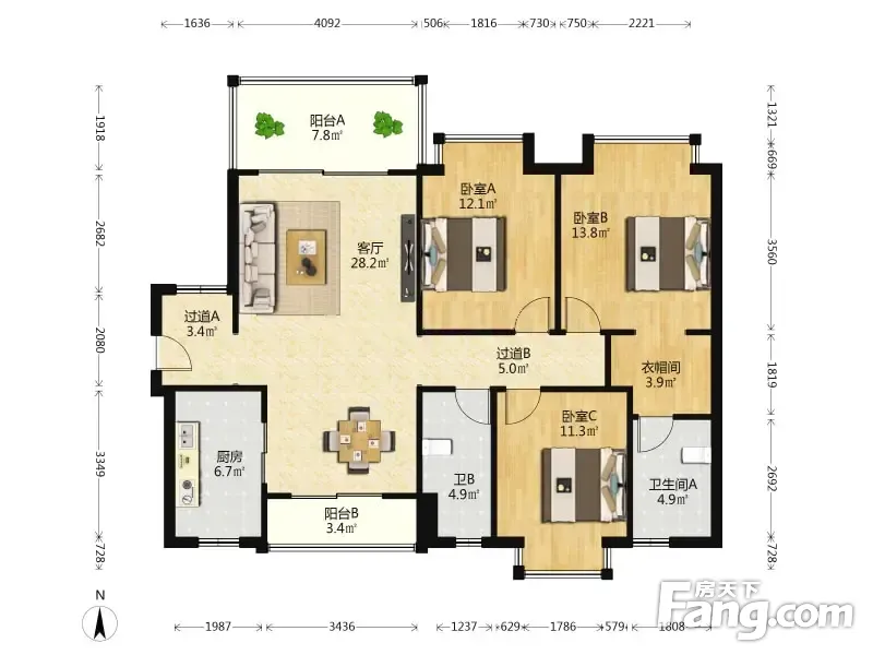 户型齐全,主打户型方正,三开间朝南,L型厨房四居