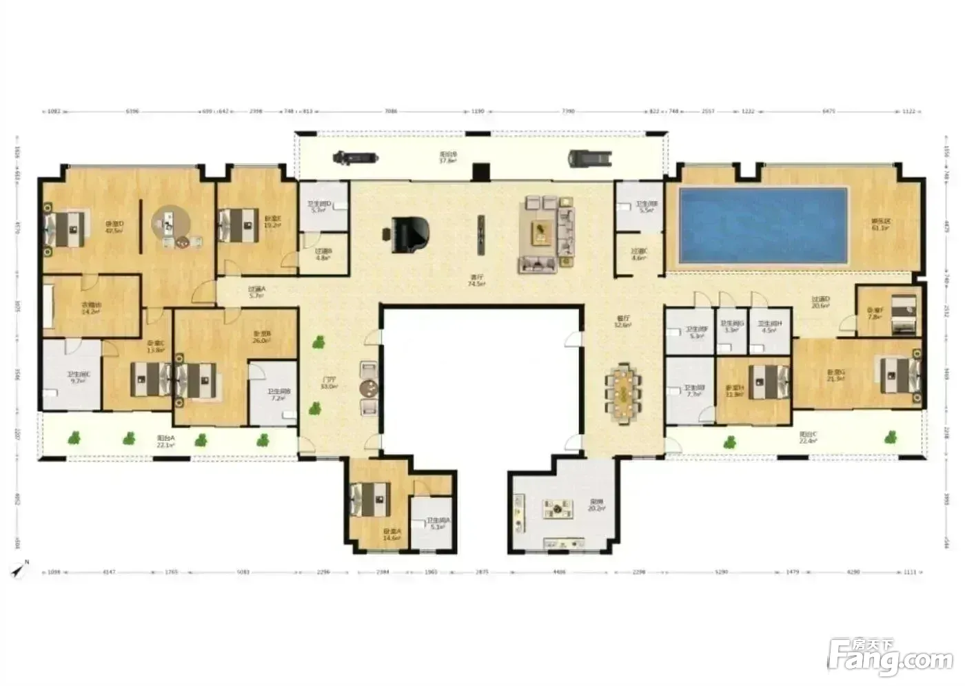 房屋拥有相对宽松的尺寸,布局通透,动静分离,设计豪华