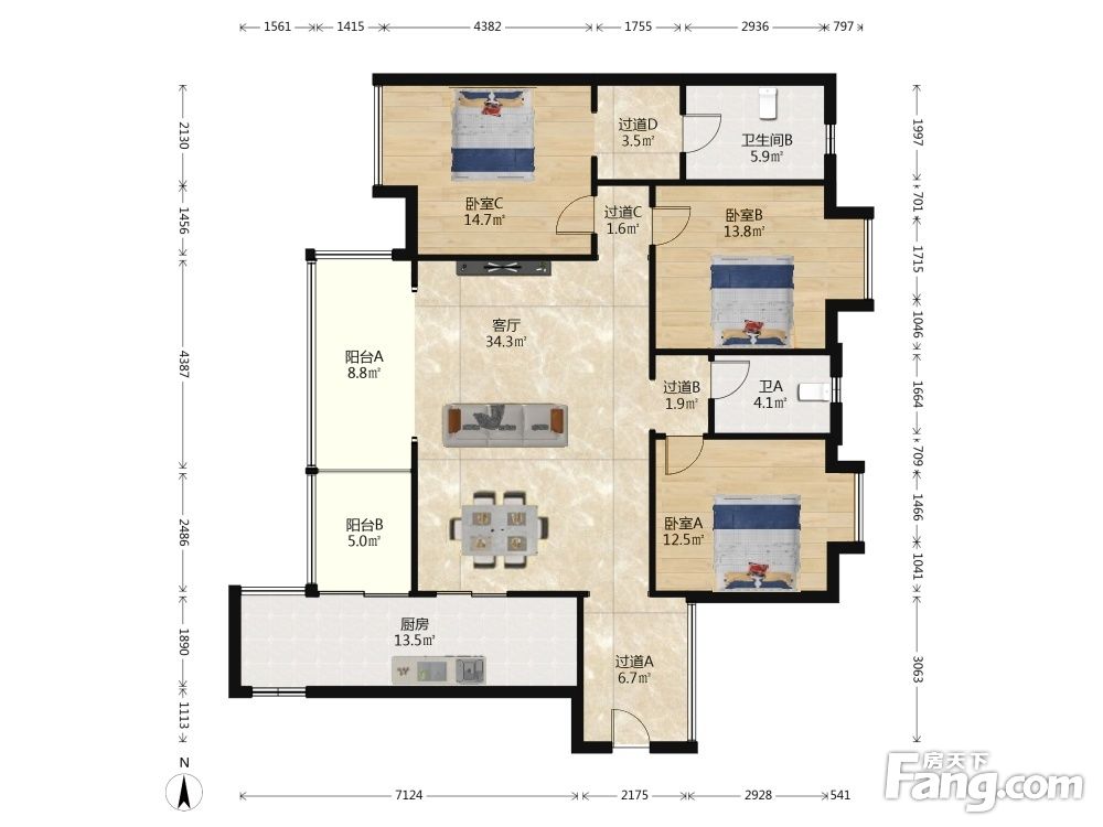 房屋户型方正,景观布局合理,设计实用,空间舒适,格局优越,采光通风良好