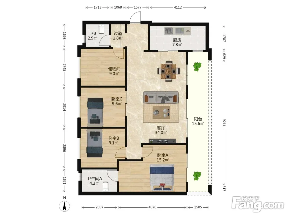 户型齐全,主打南北通透,全明格局,户型方正,动静分离,高附赠空间,采光充足三居