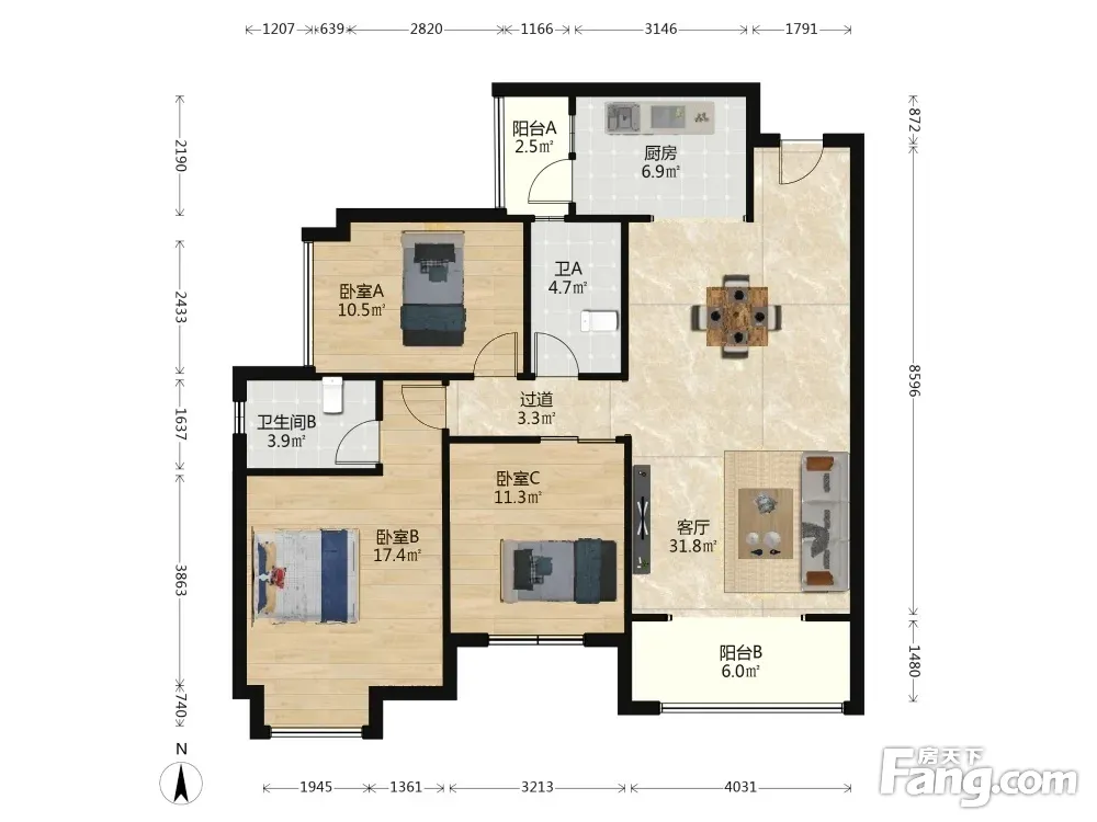 3室2厅1卫