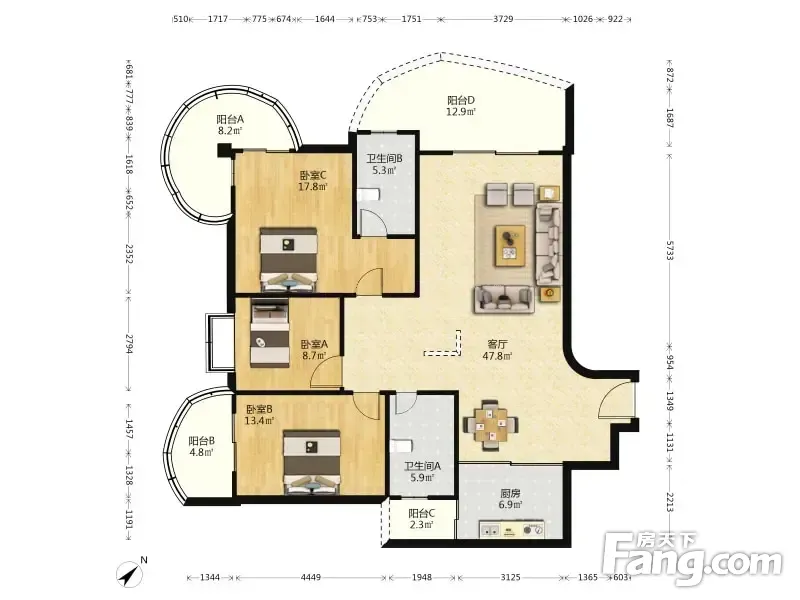 3室2厅1卫